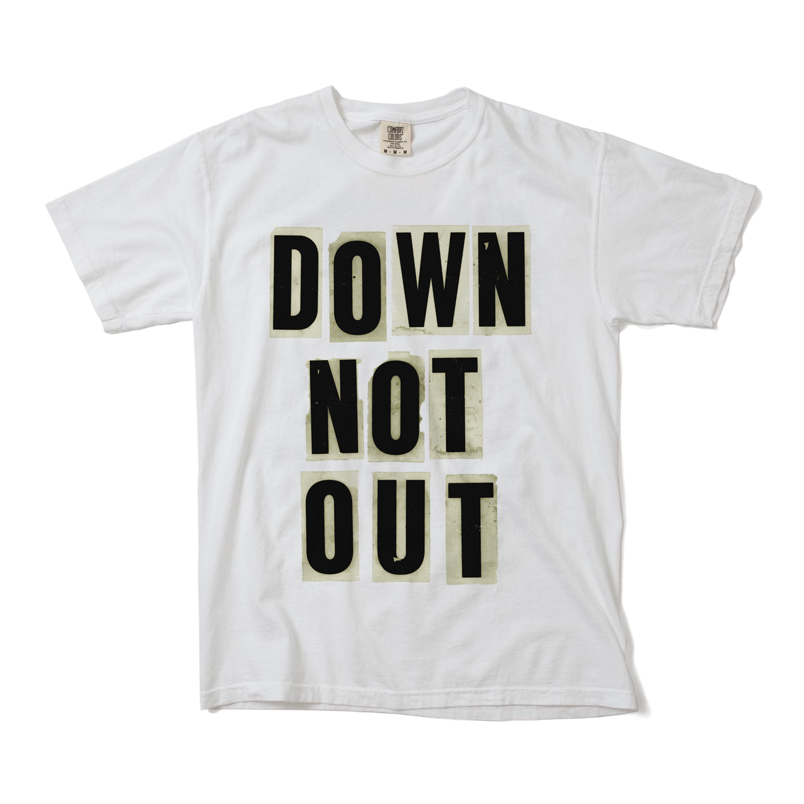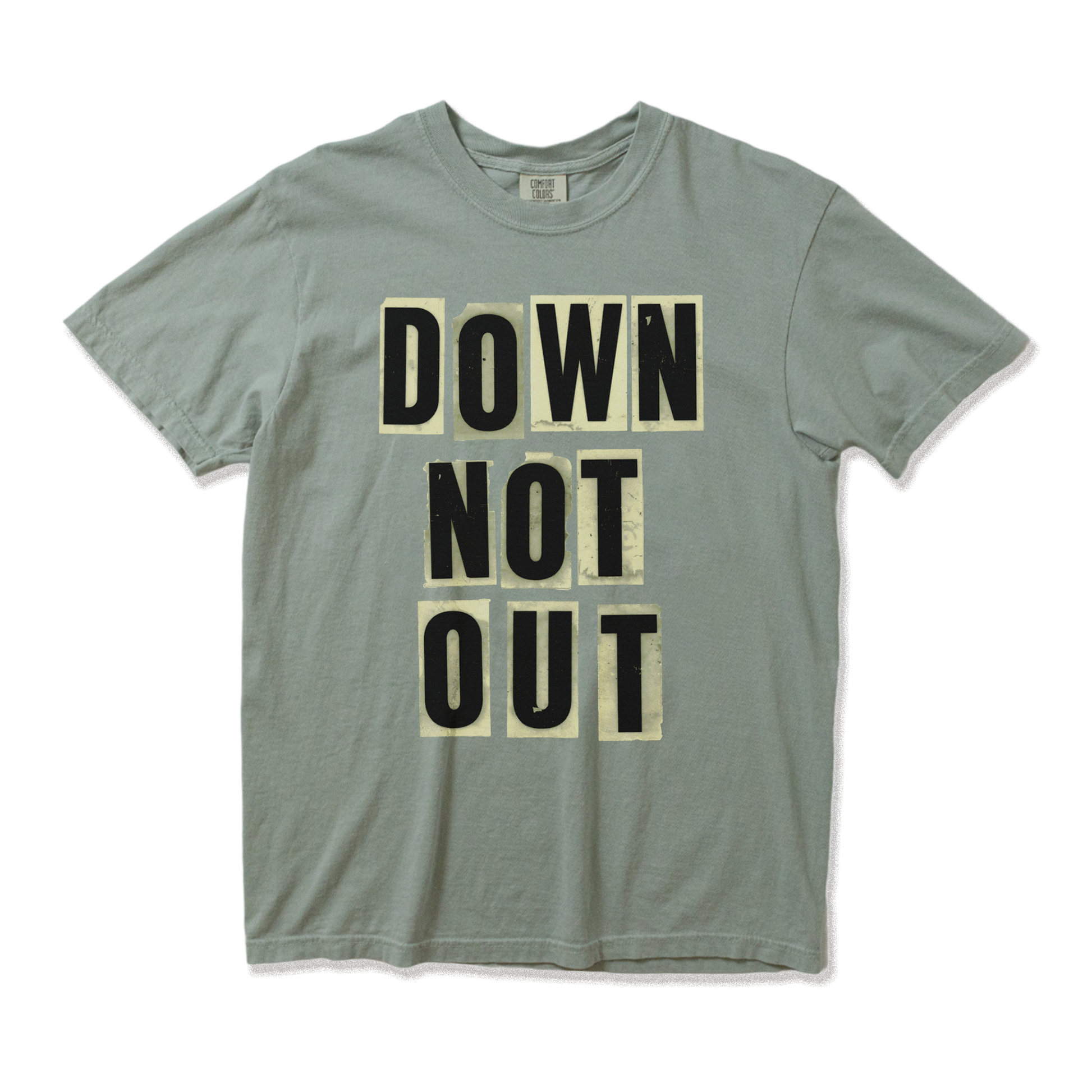 Down Not Out, a current/forever theme spelled out with plastic letters that had been worn down from years of daily use on our sidewalk sign in the Garden District.