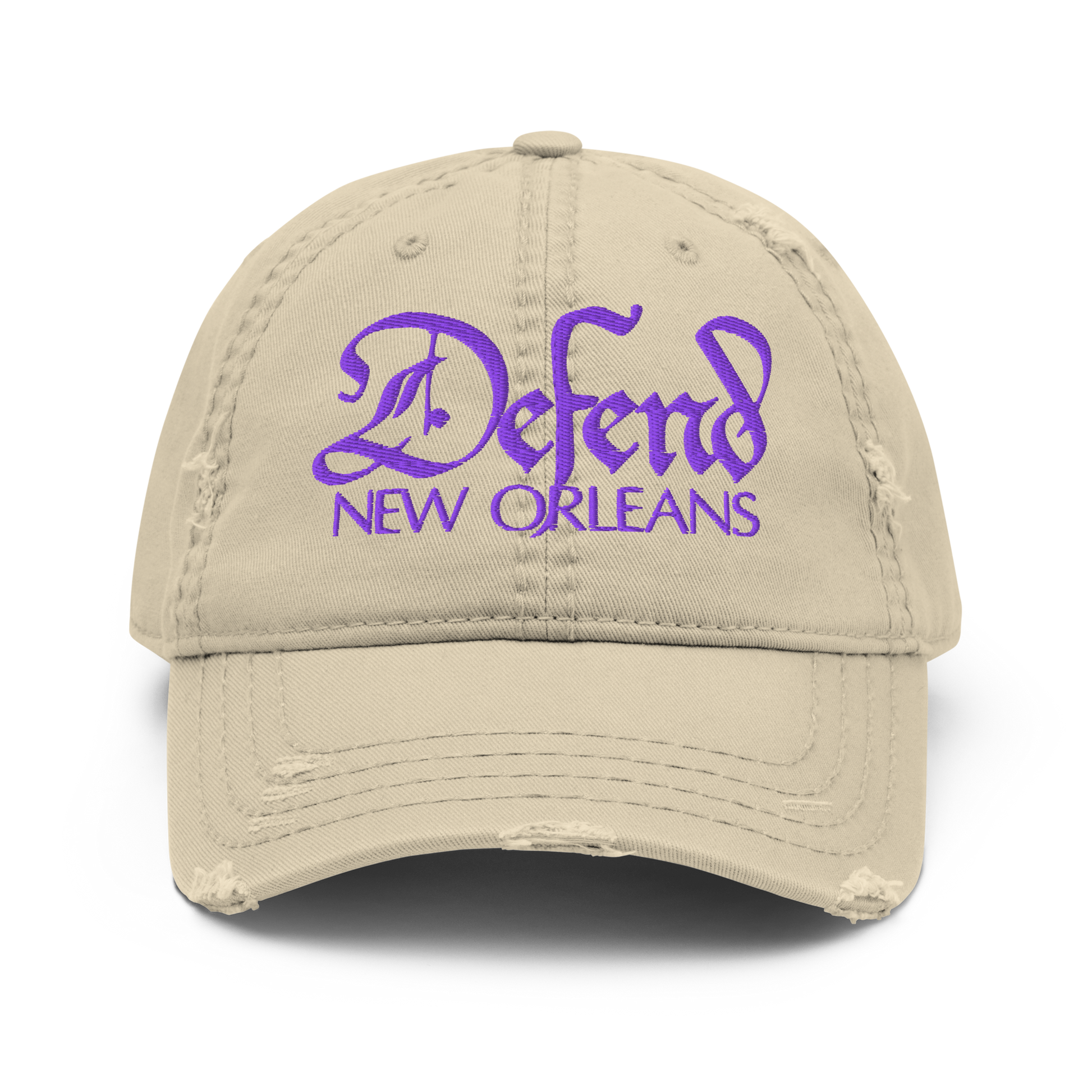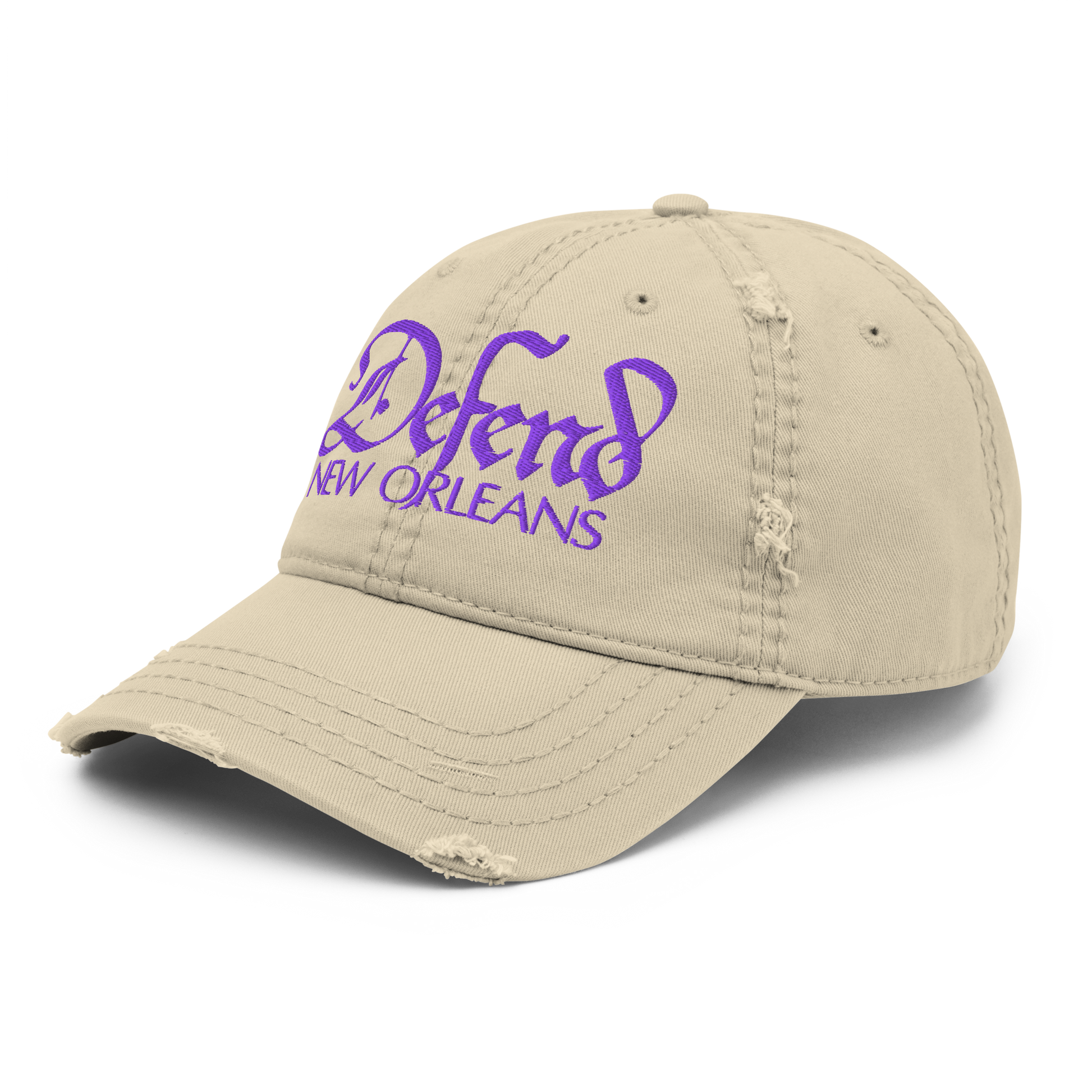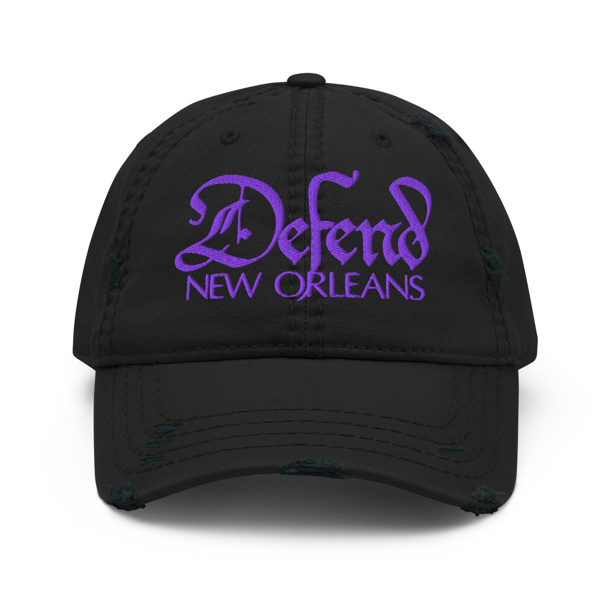 Defend New Orleans embroidered in a bold purple on a classic dad hat. With a slightly distressed brim and crown fabric to add just the right amount of texture. Pair it with your favorite vintage, and a soundtrack that vibes with Ike's Rap II or any of the legion of legendary tracks that sample it.