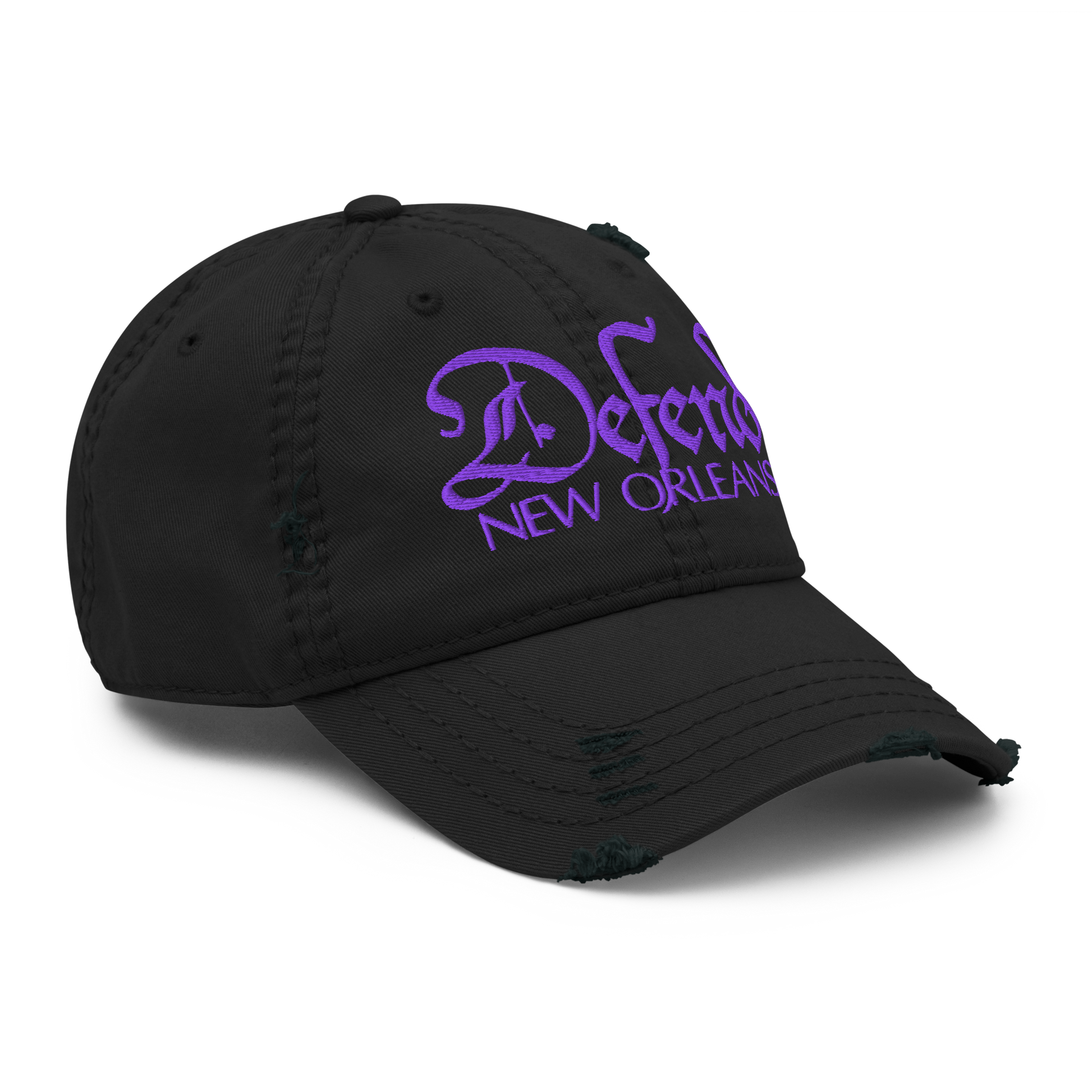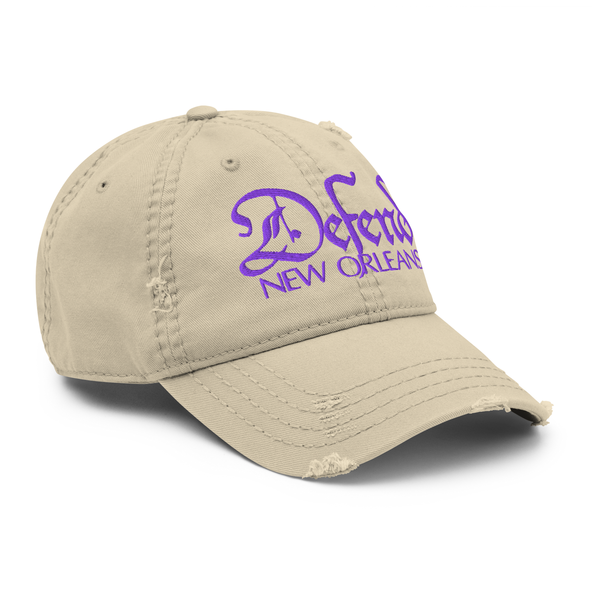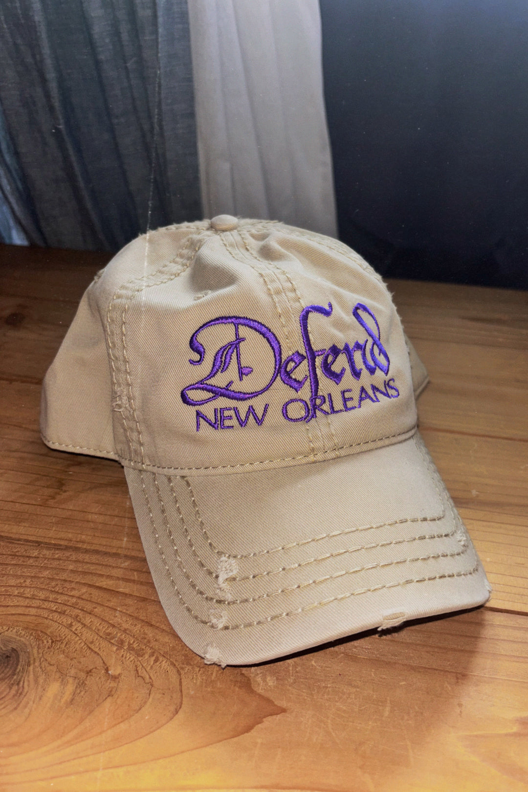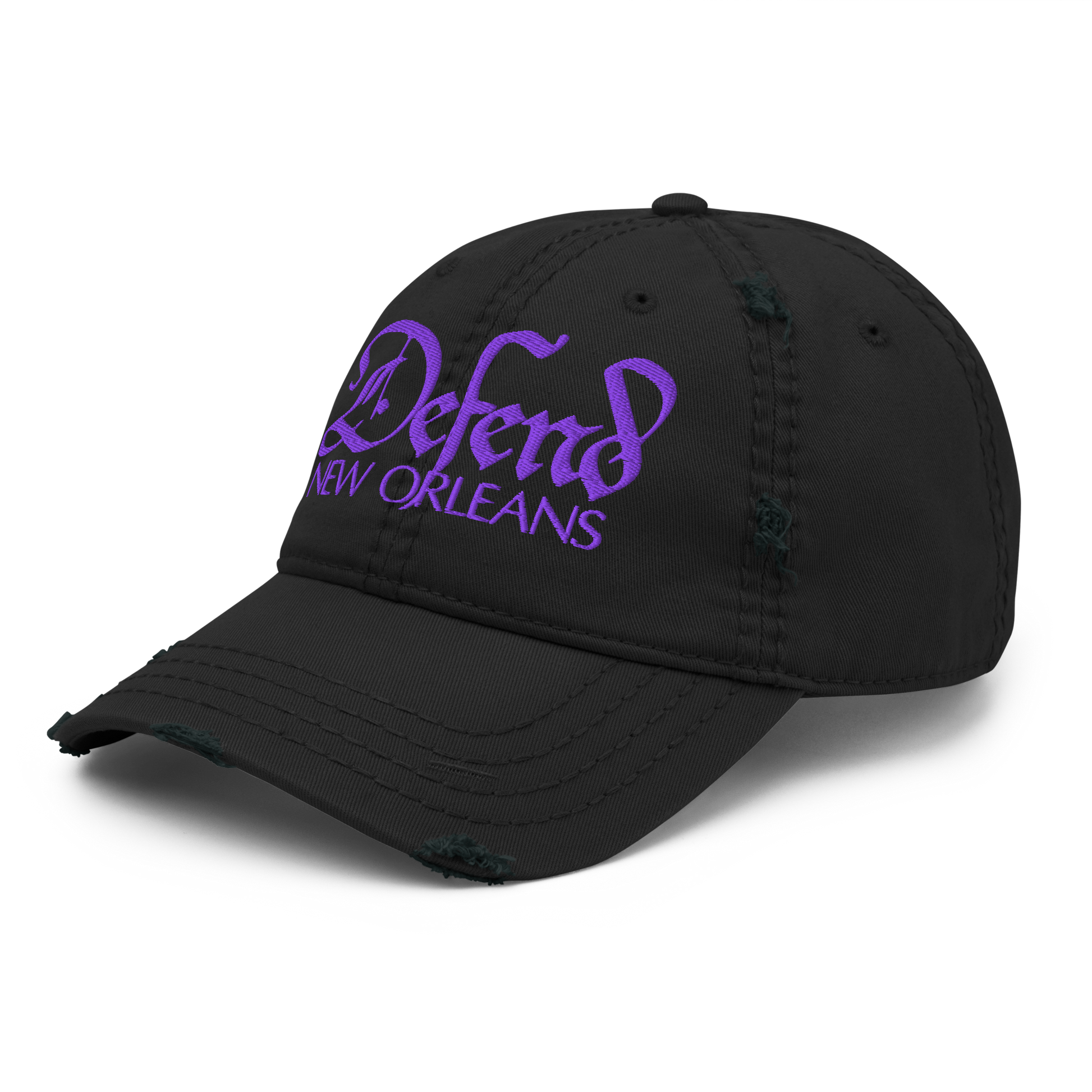 Defend New Orleans embroidered in a bold purple on a classic dad hat. With a slightly distressed brim and crown fabric to add just the right amount of texture. Pair it with your favorite vintage, and a soundtrack that vibes with Ike's Rap II or any of the legion of legendary tracks that sample it.
