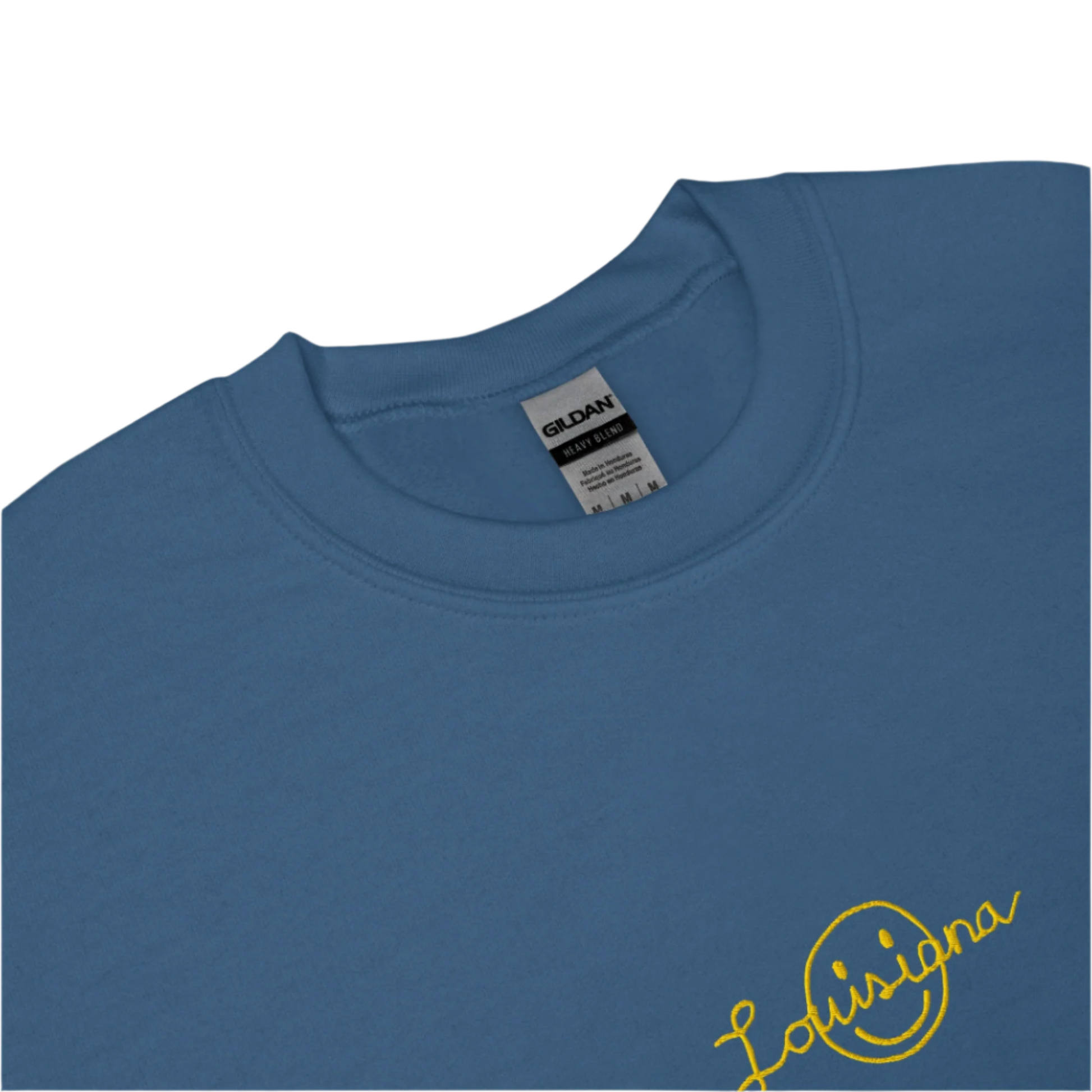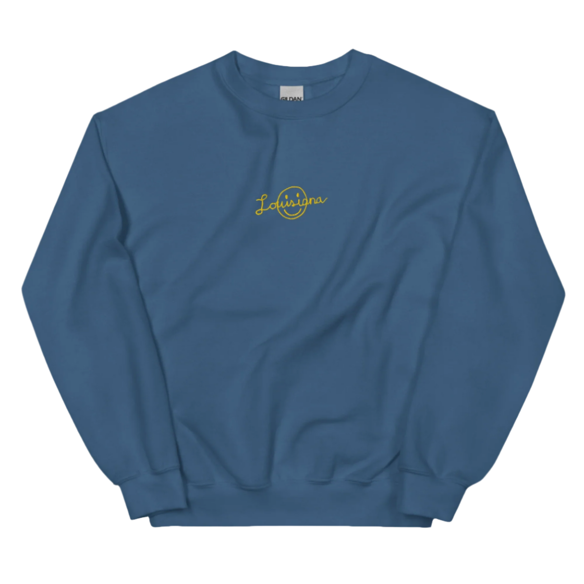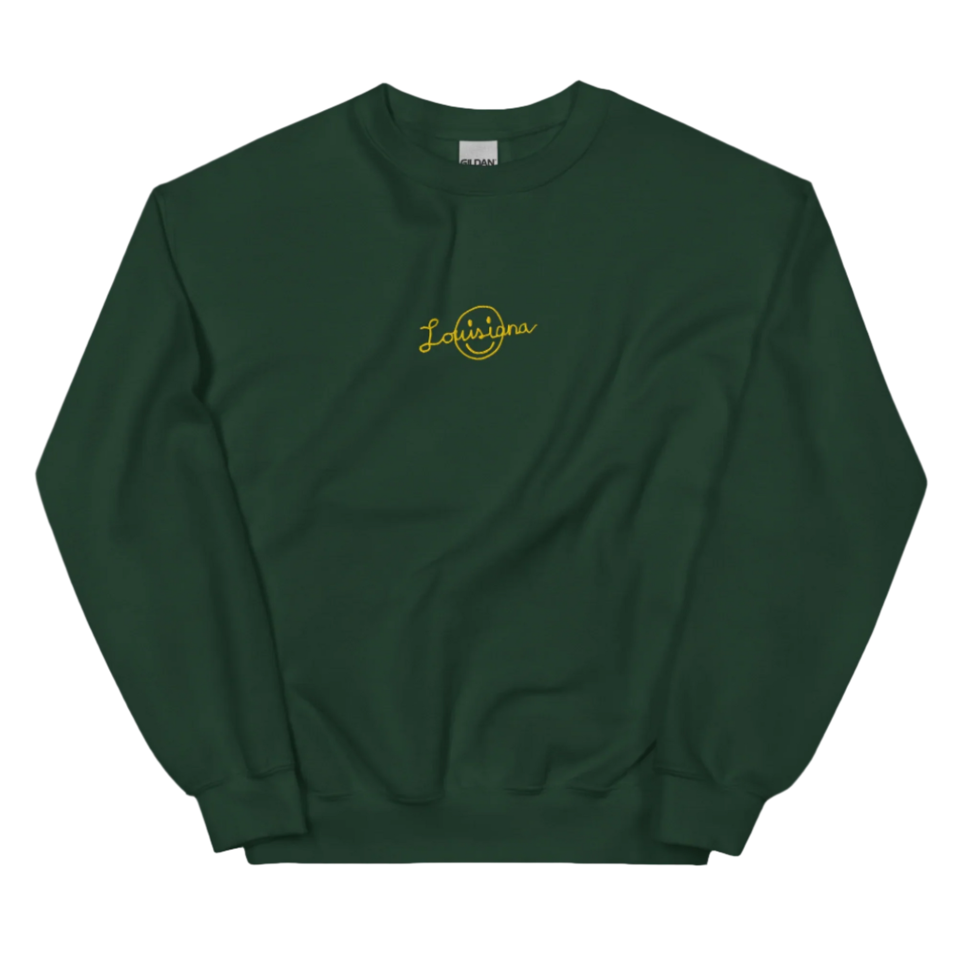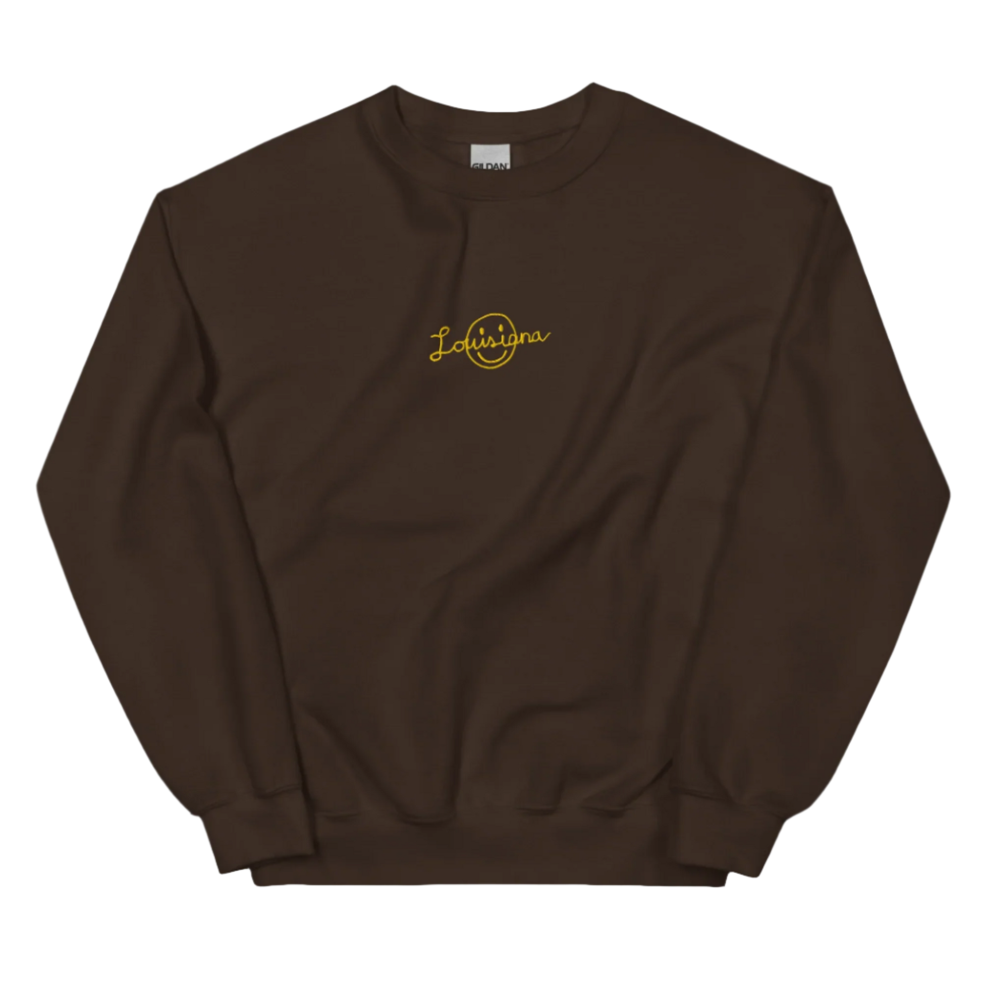 Spreading positivity with a bayou state of mind. Louisiana Smiley embroidered front and center on a pre-shrunk, classic fit crewneck sweatshirt. Made with blended material for durability and air-jet spun yarn for a soft feel